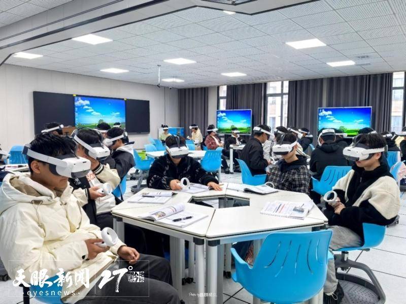 贵州大学外国语学院学生体验VR英语课程。学院官网供图