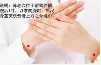 养老穴有清头明目,舒筋活络的作用。