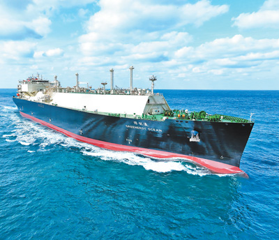 “绿能瀛”号总长299米,型宽46.4米,型深26.25米,可装载17.4万立方米液化天然气,能够满足700万个家庭一个月的用气需求。它具有四大技术特点:快速性能好、综合能耗低,低温性能好、舱型兼容广,空船重量轻、载货能力强,操控运维巧、航线匹配佳。