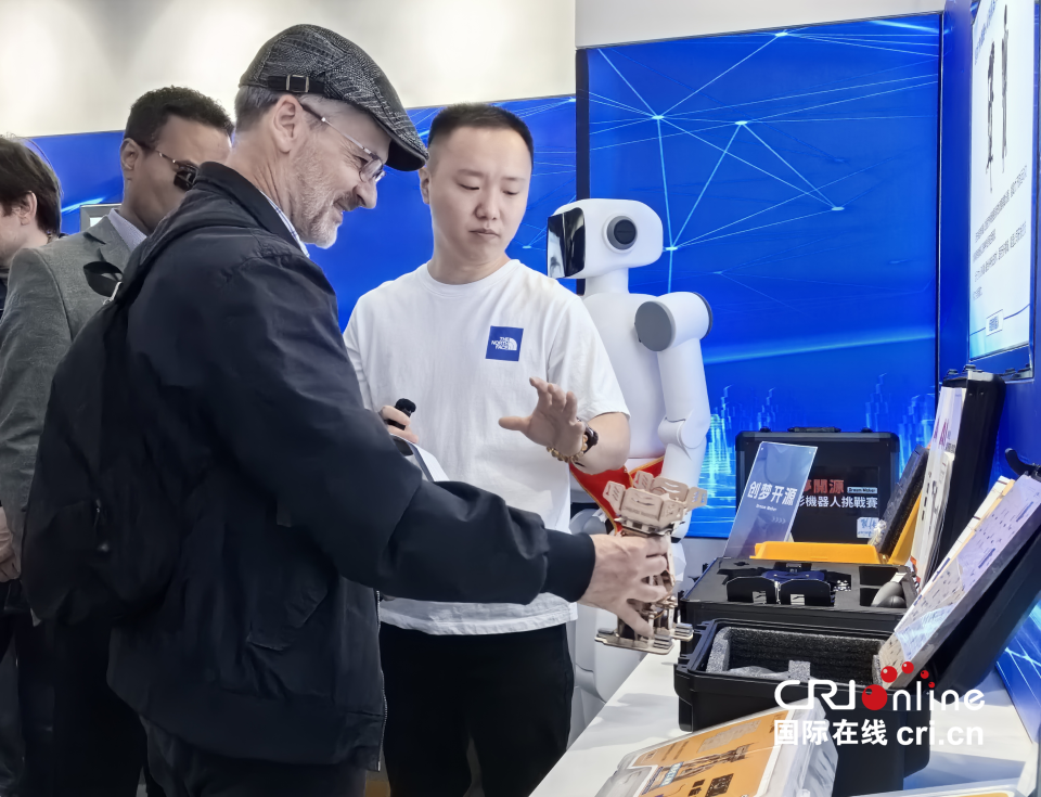 外籍专家在西安碑林环大学硬科技创新街区参观人形机器人展示中心