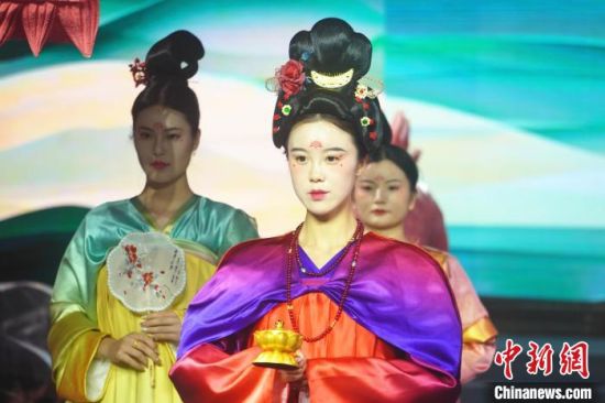 图为模特身着敦煌文化元素服饰走秀。石智卫 摄